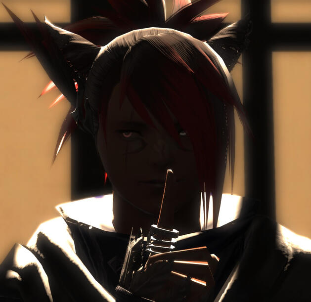 ♧ A frequent to the red light district in the Limsan area might recognize the 'tattoo' on the left side of his face, typically hidden by his hair, a brand belonging to a brothel, a high price is set on getting him alive to return to his 'owner'.